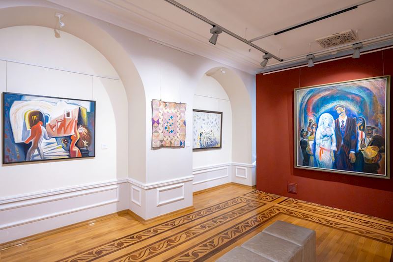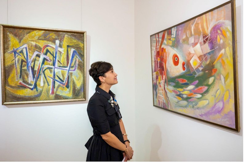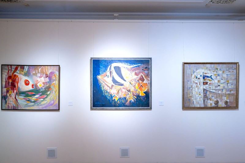 Ekspozisiyada yer alan Azərbaycan Milli İncəsənət Muzeyinin kolleksiyasına aid qurama və samovarlar rəssamın xalqın milli ruhunu ifadə edən əsərləri ilə xüsusi ahəng yaradır.