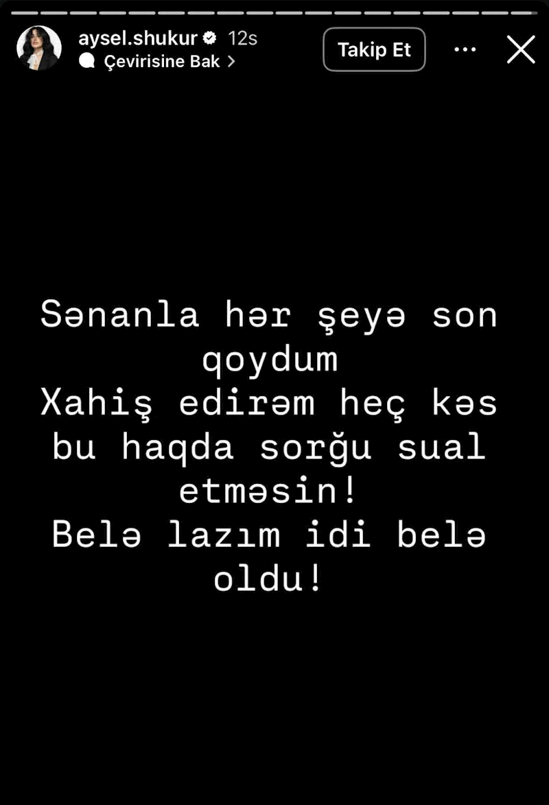 "Sənanla hər şeyə son qoydum. Xahiş edirəm, heç kəs hu haqda sorğu-sual etməsin! Belə lazım idi, belə oldu!", - deyə bloqer qeyd edib.