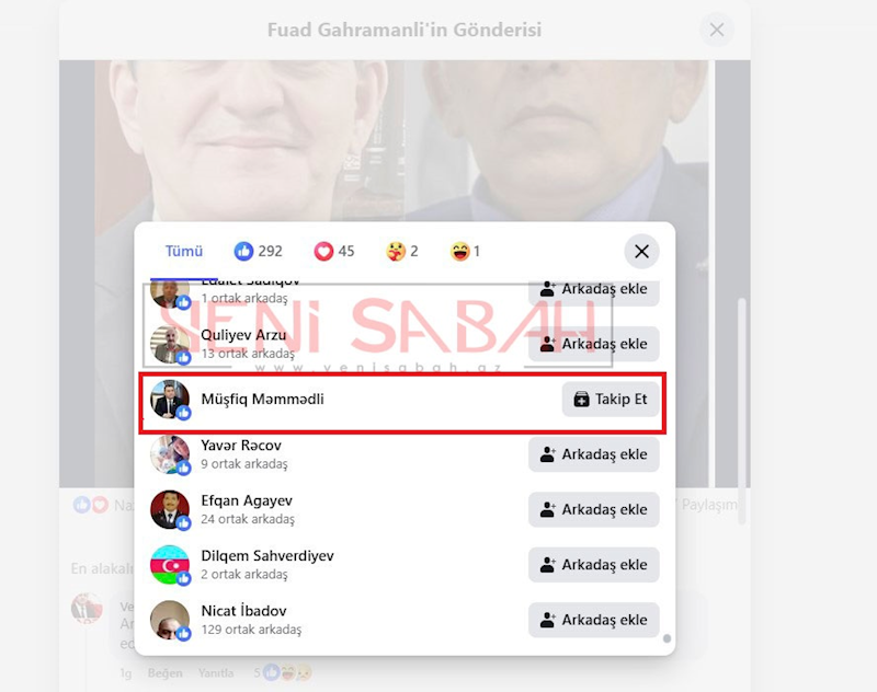 Maraqlı olan AXCP sədri haqda məqalənin yazılması və ya sosial şəbəkədə paylaşımı deyil, Yeni Azərbaycan Partiyasının üzvü, YAP xətti ilə 55 saylı Siyəzən - Quba - Xızı seçki dairəsindən deputat seçilmiş Müşfiq Məmmədlinin bu paylaşıma reaksiyasıdır. Belə ki, deputat F. Qəhrəmanlının Ə. Kərimli ilə bağlı paylaşımını bəyənib və bu izləyicilərdə təəccüb yaradıb.
